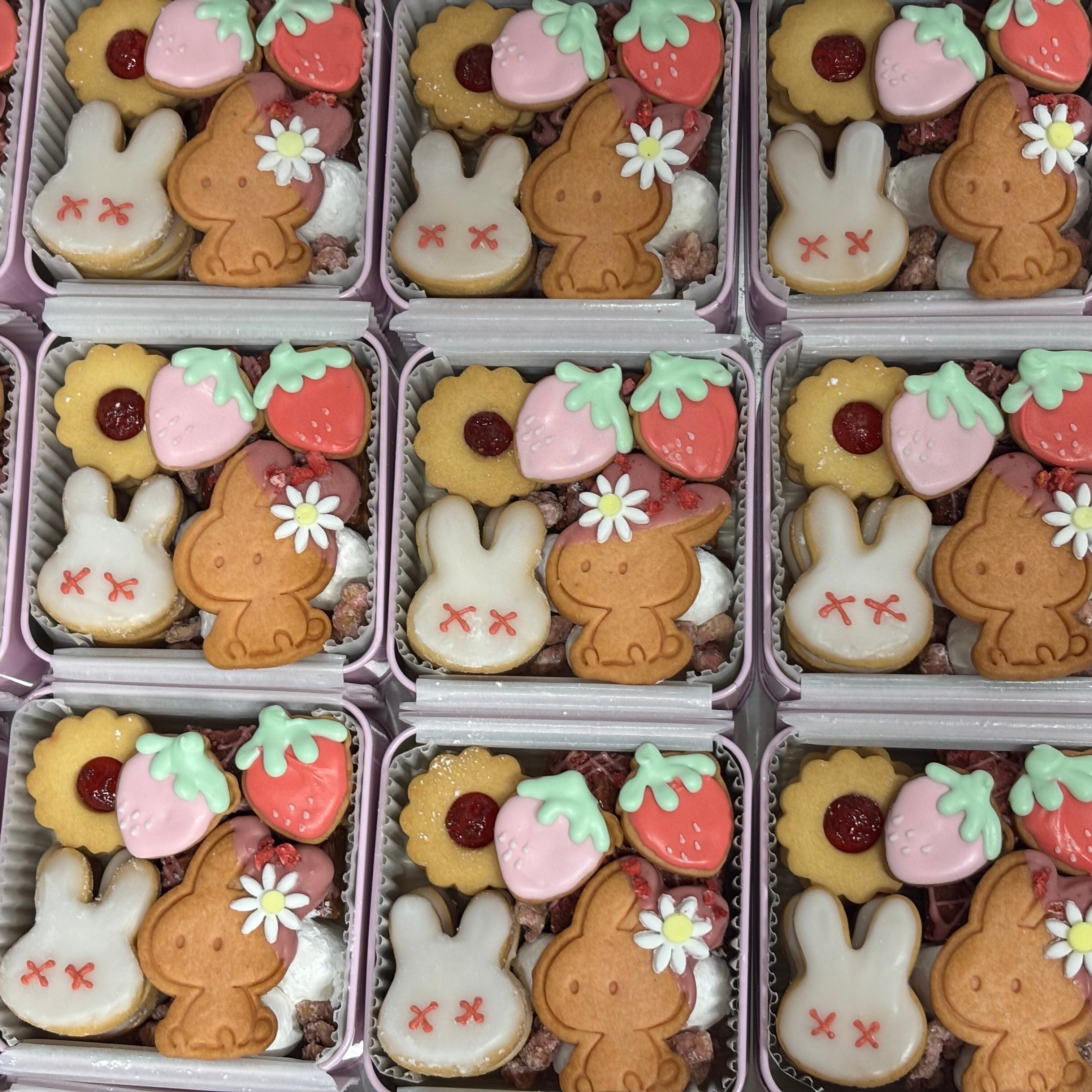 原材料名:小麦粉(国産・フランス産)、バター、砂糖、アーモンドスライス、準チョコレート(植物油脂、砂糖、乳糖、全粉乳、ココアバター、ストロベリー果汁パウダー)、いちごジャム(糖類(砂糖、水あめ)、いちご)、アーモンドパウダー、ドライいちご、くるみ、全粒粉、鶏卵、牛乳、はちみつ、いちごパウダー(乳糖、いちご、デキストリン)、クリーム、乾燥卵白、キルシュ、ティーリキュール(紅茶、酒精、砂糖)、塩/酸味料、着色料(赤色3号、黄色4号、黄色5号、紅麹)、香料、糊料(ペクチン)、カラメル色素、ゲル化剤(増粘多糖類)、リン酸Ca